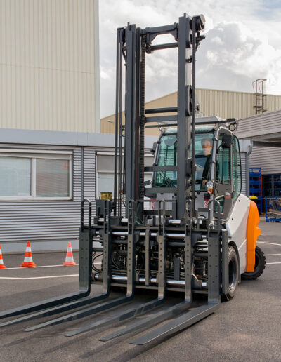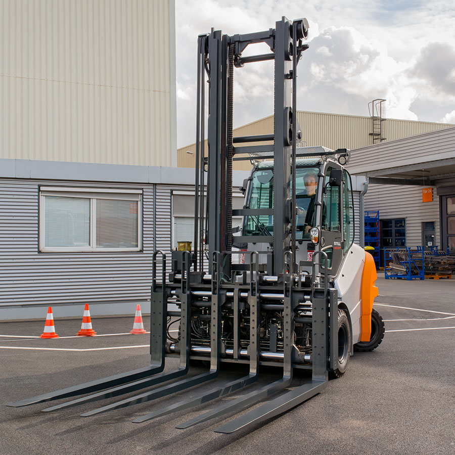 El modelo más potente de la serie, la RX 60-80/900, es capaz de elevar hasta 8 toneladas manteniendo una maniobrabilidad excelente, incluso en pasillos de solo 4.999 mm de ancho, gracias a su centro de gravedad de carga extendido a 900 mm.