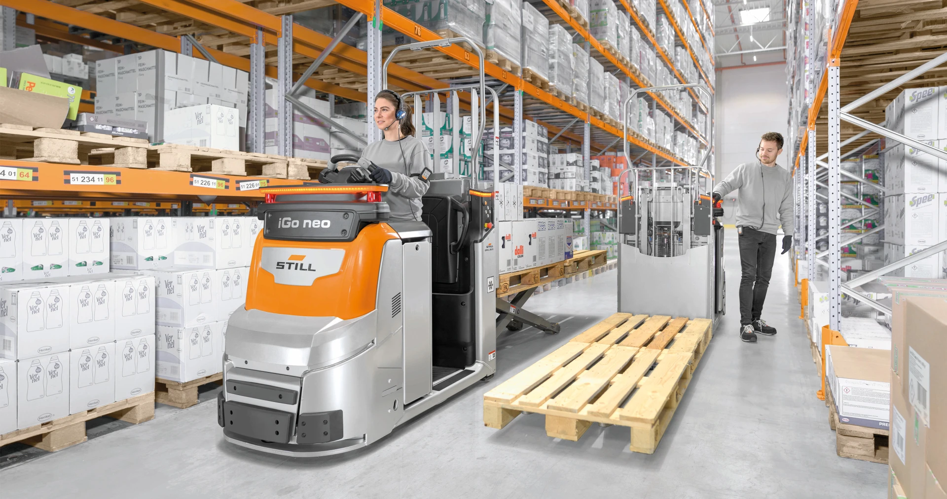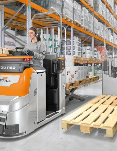 Este sistema mejora significativamente la eficiencia al reducir el tiempo y esfuerzo invertido en montar y desmontar del vehículo, eliminando hasta un 75 % de ese tiempo. Además, reduce las distancias recorridas a pie por el operario mientras transporta carga, permitiéndole concentrarse en la preparación de pedidos. La capacidad del OPX iGo neo para manejar la traslación y dirección de manera autónoma incrementa el rendimiento y minimiza los errores, proporcionando un proceso más ágil y seguro para la preparación de pedidos en almacenes.