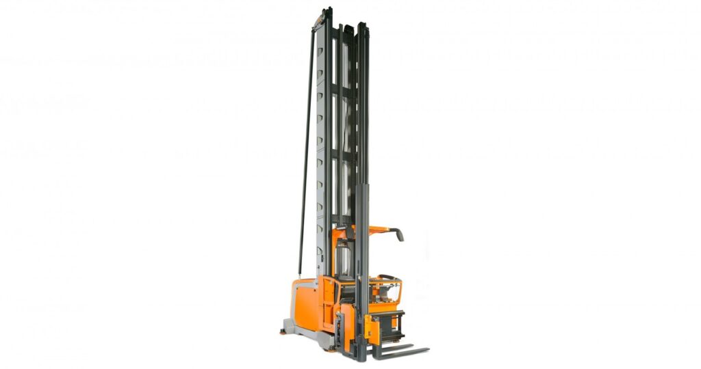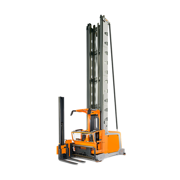 El cabezal trilateral permite realizar operaciones de almacenaje y recogida en espacios extremadamente reducidos, mientras que la estabilización activa de carga (ALS) reduce los tiempos de ubicación y desubicación en hasta un 5 %, aumentando la velocidad y precisión en cada movimiento.